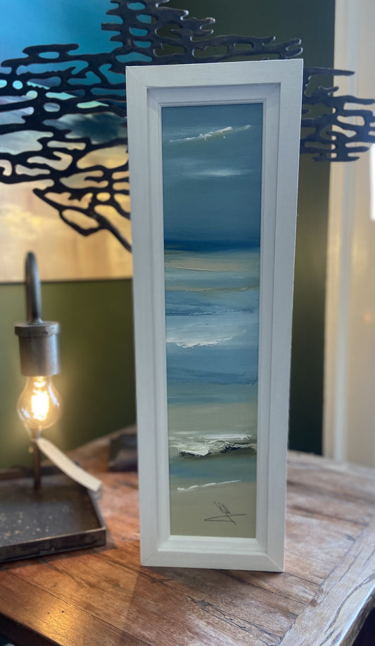 Coming from a background in design, my work is very sought after. Working in oils and using a limited colour pallet, my seascapes are very emotive and are known for their peaceful, tranquil and restful quality.