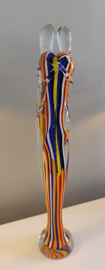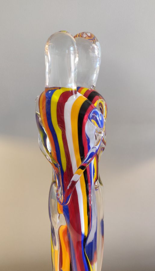 Hand crafted glass intertwined couple / stripped in colours.